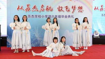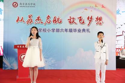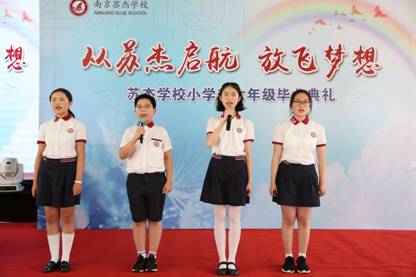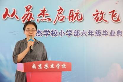 “可爱的校园,欢乐的海洋……”在满载着回忆,悠扬校歌声中,典礼正式开始。敬爱的苏校长首先致辞,她总结了孩子们在苏杰学校六年学习生活中的点滴成长,这段关键时期也为他们一生的发展准备了一个良好的基础——有爱心,善思考,会学习。最后,她深情祝福93位毕业生,愿孩子们拥有清亮的眼神、灿烂的微笑、热爱的心灵、优雅的举止、包容的态度、进取的精神,愿他们带着苏杰给予的这些宝贵财富,走过幸福的一生;她还特意请孩子们起立向爸爸妈妈们鞠躬,嘱咐他们要去了解、关心和感谢六年来为自己辛勤付出的父母,那一声清脆的“谢谢爸爸妈妈”,令在场所有人动容。