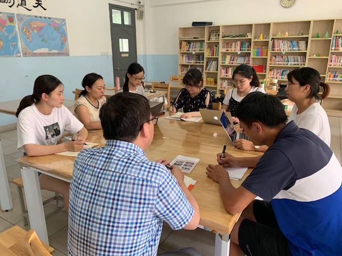 初中教师们在研讨教学