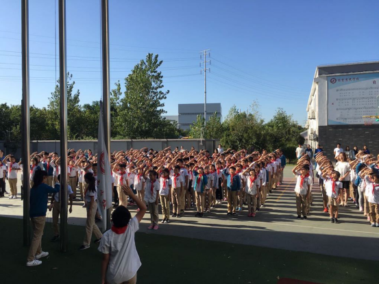 9月30日早上,我校师生共同举行“升国旗,迎国庆”活动。在激昂的《义勇军进行曲》奏唱中,鲜艳的五星红旗徐徐升起,飘扬在校园的上空。陈燕老师、蔡贤美老师,曹轩老师在国旗下做了演讲:“每当注视着鲜艳的五星红旗徐徐升起时,我们为自己身为中国人而骄傲!为伟大祖国的日益繁荣昌盛而自豪!我们爱国,爱她悠久的历史,爱她壮丽的山河,爱她灿烂的文化,更爱她顽强不屈的精神。我们要意识到自己是一个中国人,祖国的命运与发展都和自己有关,要想到长大以后能为这个国家做点什么。出门在外,不随地乱扔垃圾,少用塑料袋,用自觉的行动保护身边的环境,让家乡变得更干净,更美丽——这就是爱国;做到自觉排队,在公众场合不大声喧哗,与人交流懂得尊重对方的文化——这也是爱国;如果你到国外旅行,请记住,你,就代表中国的形象。谈爱国,我们能做的还有很多,我想最重要的是,我们从小要读好书,练好本领,长大以后才有能力为我们的祖国贡献力量。”姚嫒媛等同学也在国旗下做了精彩的演讲。
