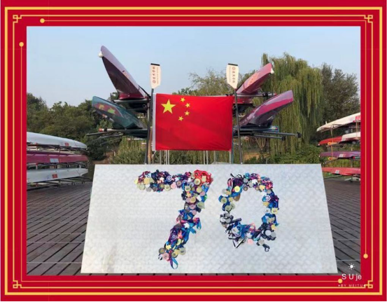 下午,董事长带领着大家将三年来苏杰赛艇队运动员和董事长在国内外赛艇大赛中获得的近百枚奖牌拼成了亮丽的“70”,为祖国母亲庆生。