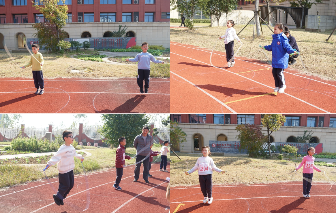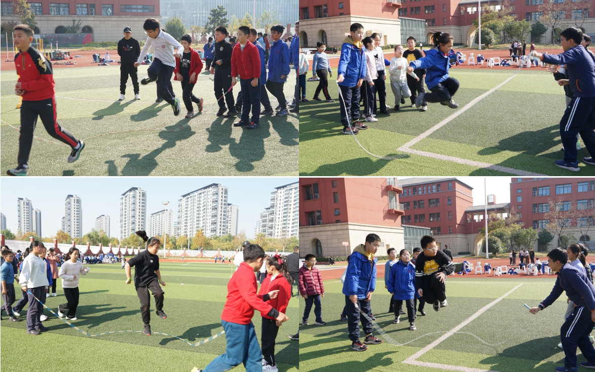 三、四年级的“火炬接力”仪式感满满,象征着拼搏精神的 “火炬”在同学们手中传递,每一次交接都凝聚着信任与期待;“8 字跳长绳”项目中,每个班级都有自己的“独门秘籍”,展现出超强的团队协作力。