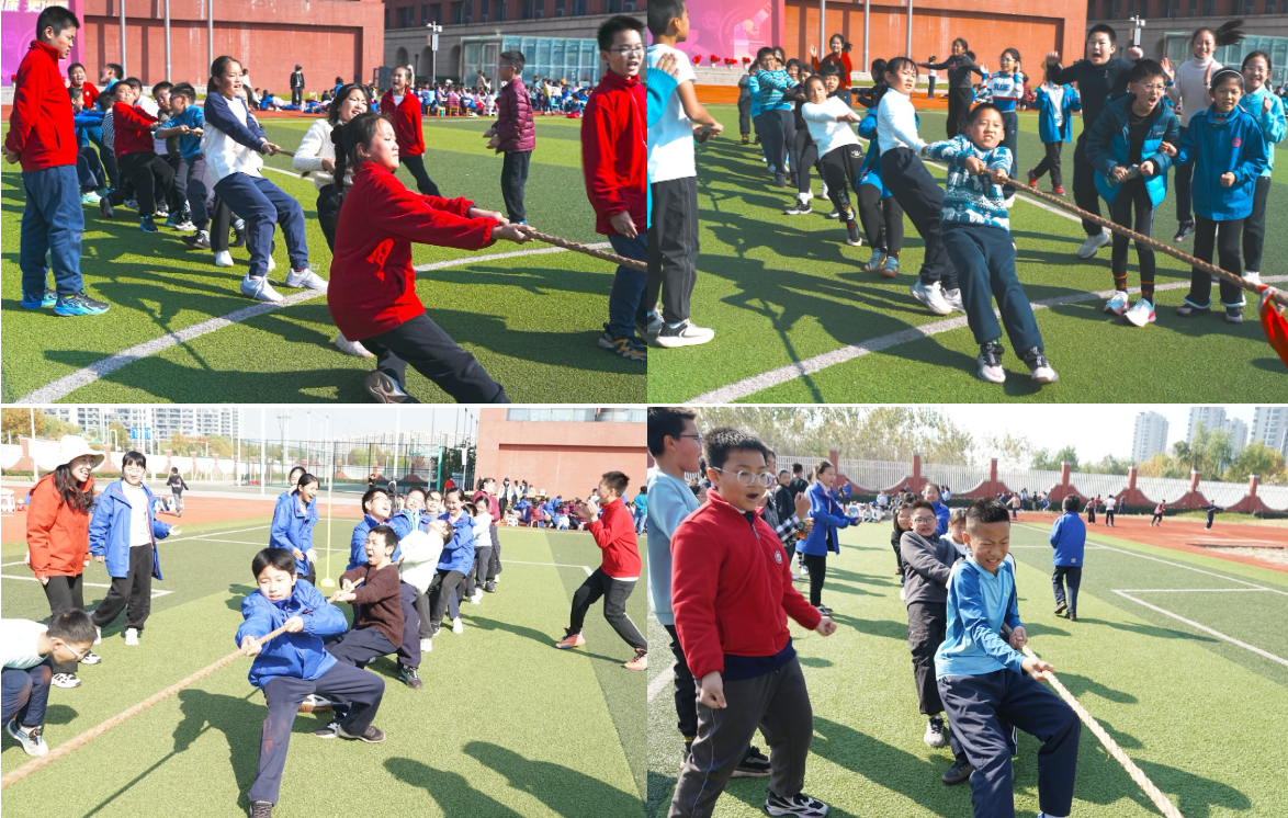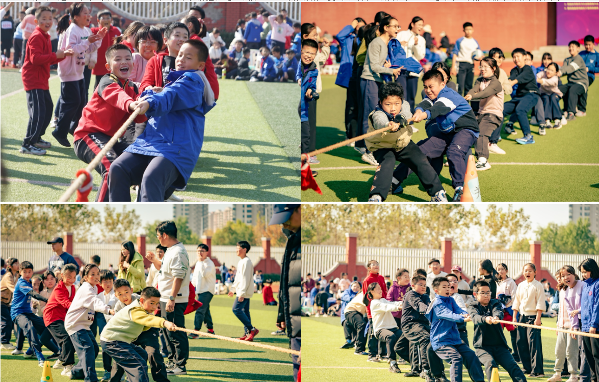 “拔河”是绝对的重头戏,哨声一响,同学们紧握长绳,双脚蹬地、身体后倾,使出浑身力气奋力拉扯,红绳的每一次移动都牵动着所有人的心。
